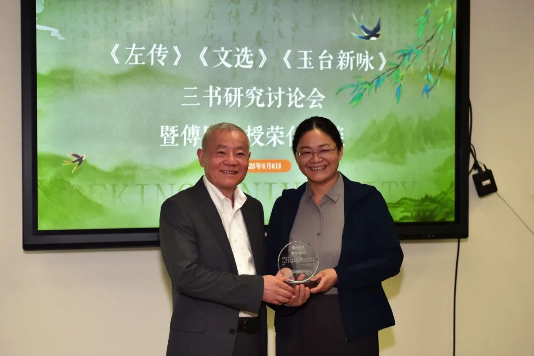 2025年6月6日,由北京大学中文系古代文学教研室主办的《左传》《文选》《玉台新咏》三书研究讨论会暨傅刚教授荣休座谈会在北京大学中文系B124会议室举行。中国《文选》学研究会会长、北京大学中文系教授傅刚,国家图书馆原馆长、北京外国语大学詹福瑞教授,中国社会科学院外国文学研究所原党委书记党圣元研究员,国家清史编纂委员会办公室原主任、中国海洋大学卜键教授,首都师范大学左东岭教授,绍兴文理学院过常宝教授,中国人民大学徐正英教授,三联书店总编辑常绍民编审,研究出版社原总编辑沈悦苓编审,北京大学中文系主任杜晓勤、党委书记贺桂梅,以及来自北京大学、中国社会科学院、中国人民大学等高校和科研机构的四十余名专家学者出席会议。