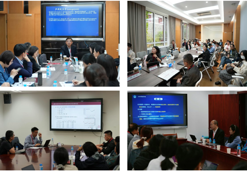生理语音学组围绕不同语言及方言的生理发音机制展开研讨,从分类、演变、描写的角度探索不同语言中的辅音、元音、声调及嗓音特征。病理语音学组聚焦各类病理状态下的语音表现,涉及腭裂、声带息肉、中风失语症、抑郁症、精神分裂症等患者的语音感知与产出研究,同时探索婴儿孤独症、语言障碍风险预测及老年人声调感知衰退延缓等方向,为语音评估与干预提供参考。二语语音习得组针对不同母语背景学习者的汉语语音习得展开探讨,研究焦点包括焦点重音、声调、语调、鼻韵母等的感知与产出,同时涉及方言人群普通话发音特点及儿童二语情感韵律感知,丰富二语语音习得理论与实践。