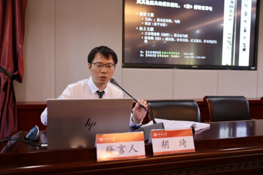 北京大学助理教授胡琦作题为《流动的“音乐性”:章句之学与〈诗经〉的有声诵读》的报告,梳理先秦至清《诗经》章句之学的发展,指出历代学者通过断句实践不断重构《诗经》文本的“音乐性”,显示了对韵律美学的持续建构。