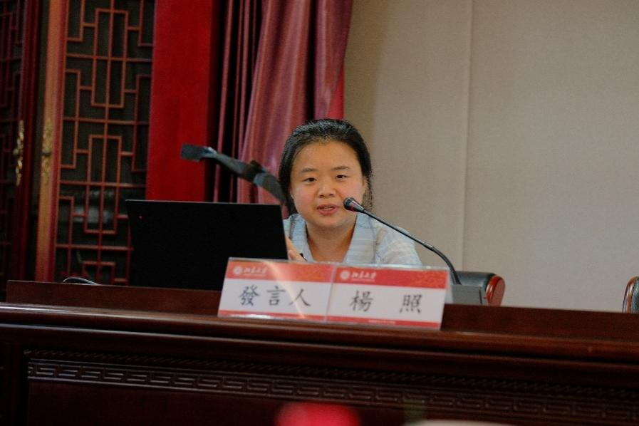 重庆师范大学讲师杨照作题为《论盛唐的两类特殊的五言句式》的报告。她通过分析盛唐五律中“○仄平仄平”与“下三连”两类特殊句式的律句属性与表意功能,再次评估这二者的地位,重新界定盛唐律句的声律多样性及其后世演变。