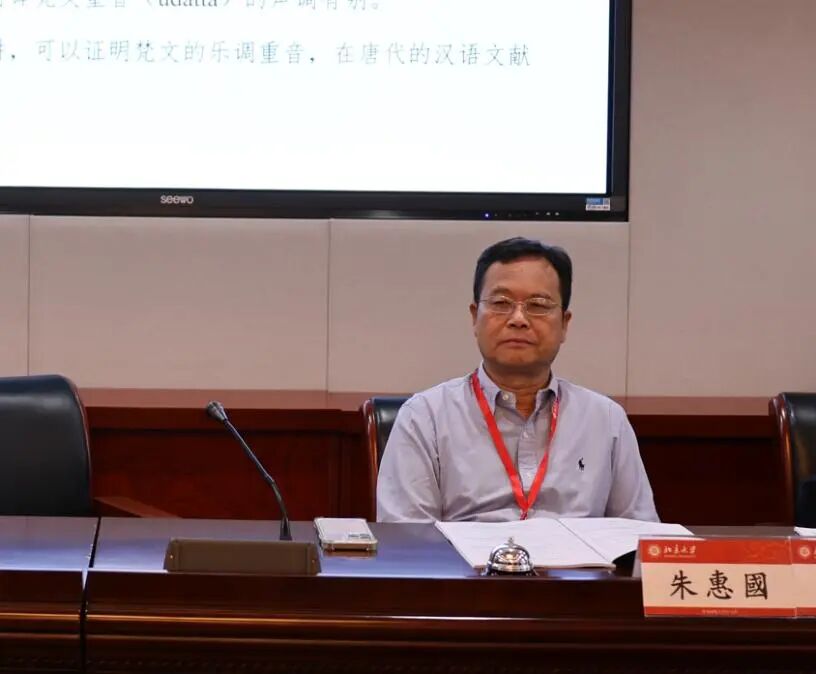 中国人民大学副教授李建强作题为《梵语的重音与汉语的声调》的报告,结合梵词的语法形式确定重音位置,通过观察译音汉字的声调规律,推测吠陀梵语的重音规则在佛教咒语的诵读中可能依然存在,依然保存乐调重音。为汉语声调研究提供线索,为梵语研究提供参考。
