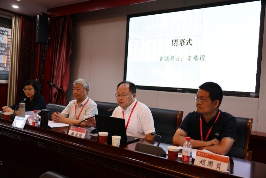 闭幕式由孙玉文主持,李飞跃、赵团员、金溪三位学者进行了总结发言。李飞跃将感受总结为三点,首先指出学术研究基本范式上从文本共时结构相历时结构转向;其次提到学界知识对齐有了新的标准,数据库、工具平台成为经验判断的重要依据;最后强调要把人作为变量加进来重新进行思考,声律的审美效果研究,关注到学界面临的利用工具平台处理经验和规则、跨学科知识对齐的问题。赵团员在发言中提出,技术和数据变得有效需要基于概念的不断精确化,强调跨学科概念的建立,术语跨学科沟通的重要性,并表示对通过不同学科结合还原古代文学艺术语言现场的期望。金溪回顾了韵律学跨学科学术图景的展开,希望韵律学能最终形成“诗言志、歌永言,声依永”彼此支撑且以“律和声”为统摄的立体架构,从而达到各学科“八音克谐”的状态,以跨学科视野促成真正深入有效的合作研究,希望能将这一事业继续推动下去。孙玉文作最后的总结发言,首先强调了跨学科交流机会的宝贵,其次指出现在学界研究愈发精细化的趋势,再次提到针对具体问题利用计算机新工具、新方法的重要性,最后肯定了与会学者利用形式化、可操作手段提高研究客观性。在热烈而真挚的学术交流氛围中,“声律 ·格律 ·乐律:中国古代语言、文学、乐舞韵律艺术研讨会”圆满落幕。