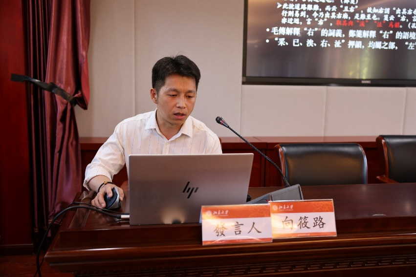 北京大学助理教授向筱路作题为《“变文以取韵”与“异章而变文”——例谈古代韵文中内容与形式的协调问题》的报告,以《毛诗正义》所说的“变文以取韵”与“异章而变文”为例,探讨古代韵文为协调内容与形式所采取的调整策略,揭示其对文学语言史研究的重要意义。