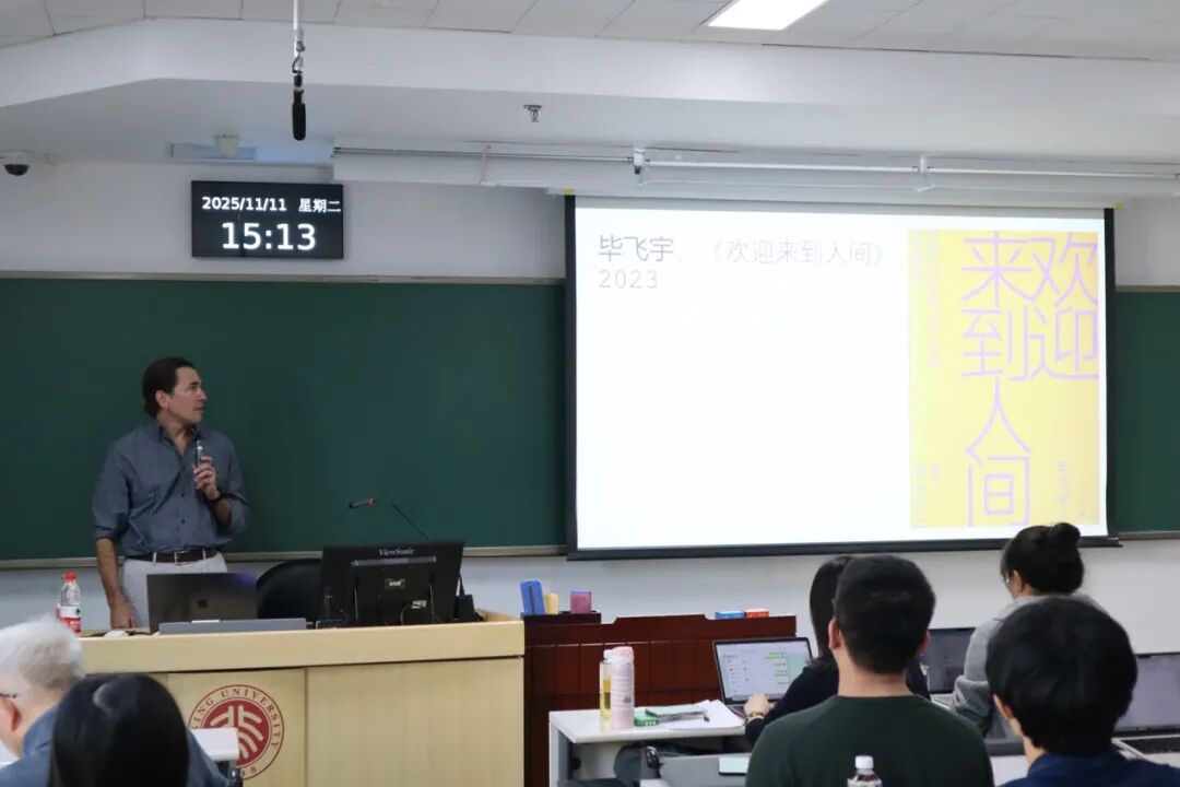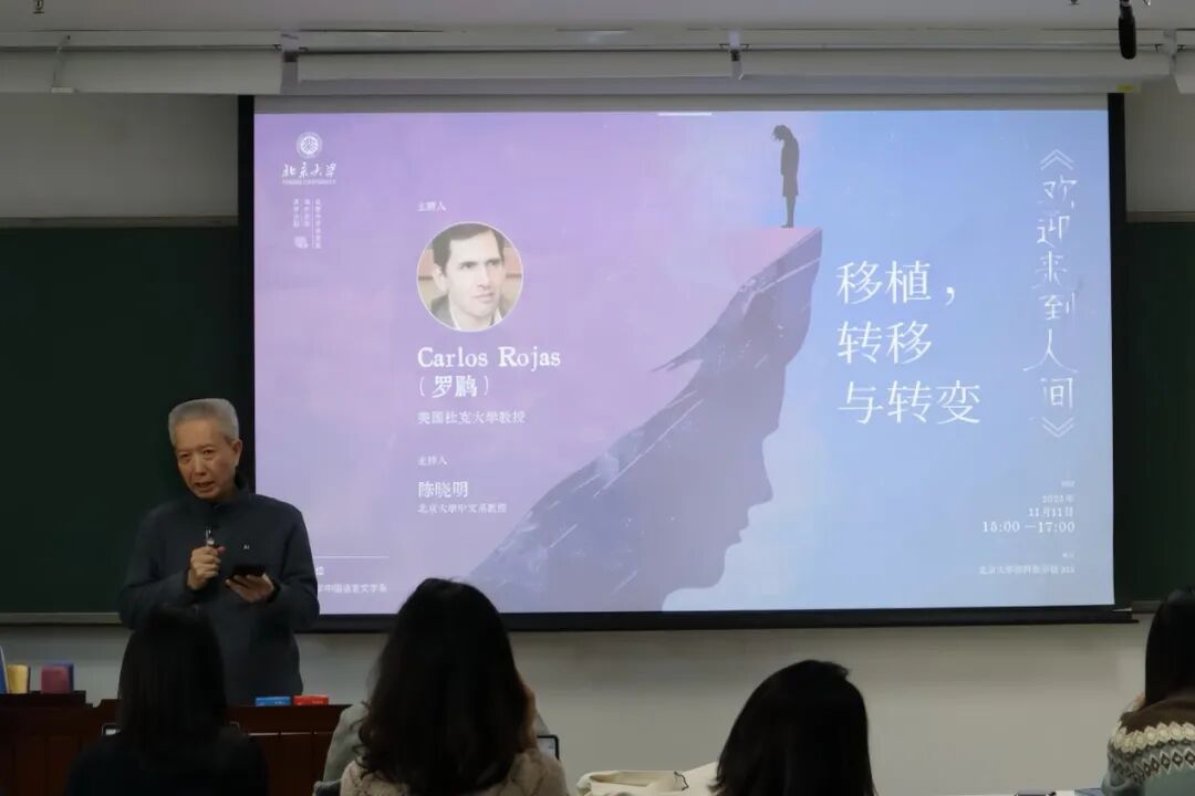 2025年11月11日下午,美国杜克大学教授、当代知名汉学家兼翻译家罗鹏(Carlos Rojas)的讲座《欢迎来到人间:移植,转移与转变》于北京大学理科教学楼313举行。本场讲座由北京大学中文系教授陈晓明主持。
